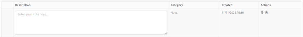- Select the Add note option from the Add new… drop-down list on the documents tab of the member record. A new row will appear at the top of the documents list.