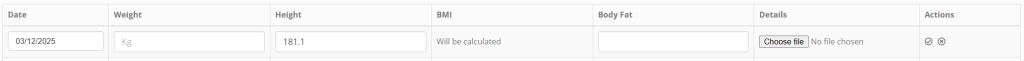 - Optionally, upload a corresponding document or image relating to the reading. For example, this might be the scan of an output from Body Fat Analysis scales.