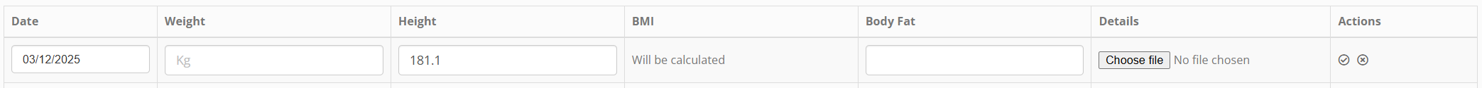 - The height field will be pre-populated from the last recorded height, but may be overridden.