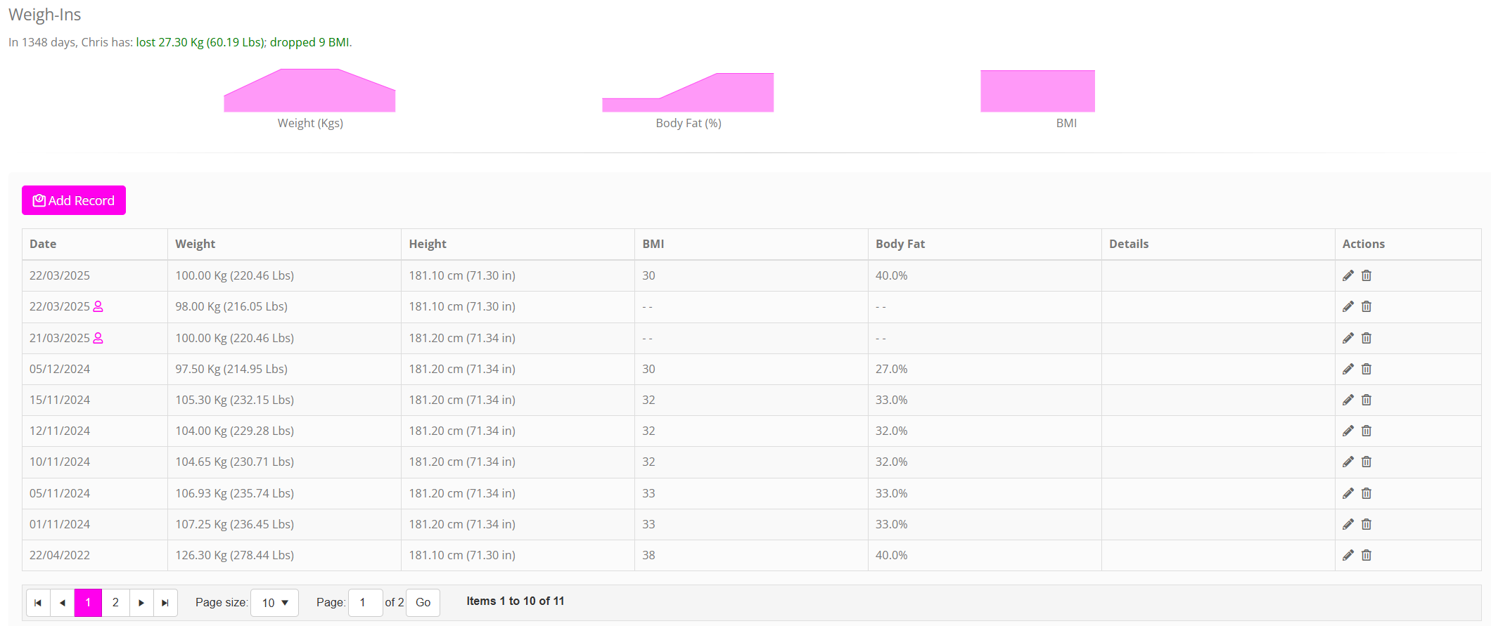 To edit an existing weigh-in, click the icon alongside the record that you wish to edit.