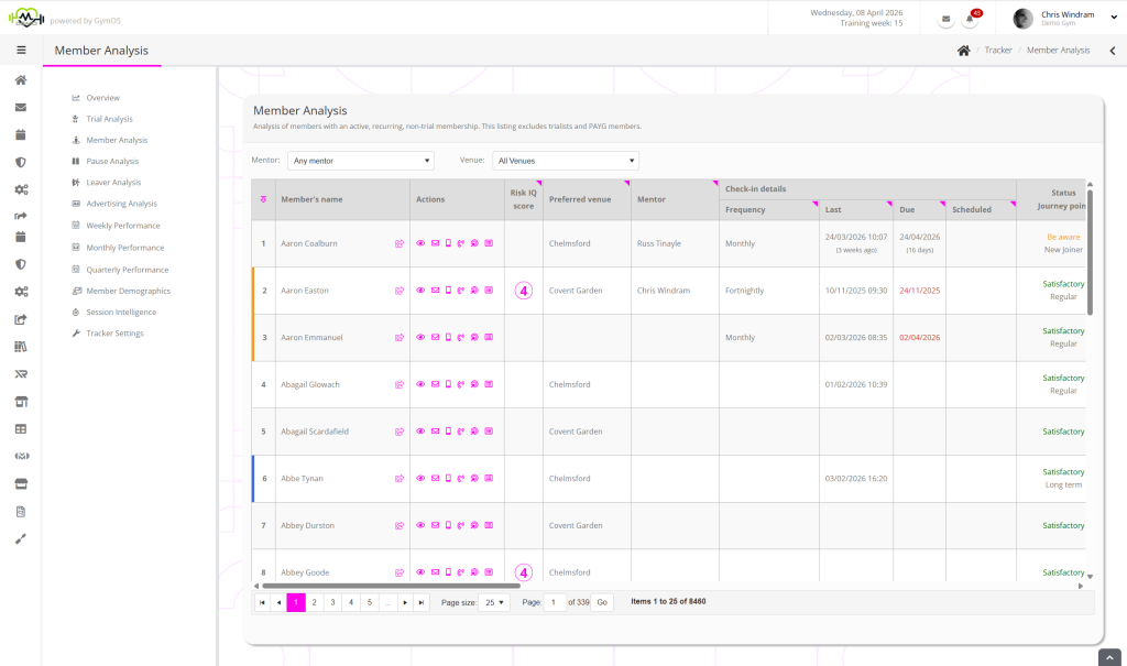 The Member Analysis function shows those individuals with an active, recurring, non-trial membership. The listing excludes trialists and PAYG members.