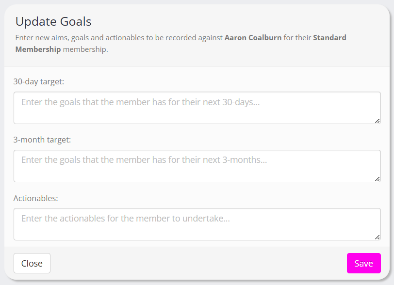 You may update the goals and aims for a given member by clicking the action icon.