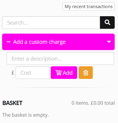 - Click the Add a custom charge option in the basket area of the page.