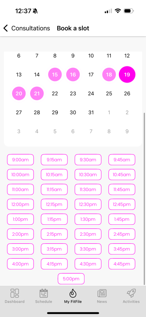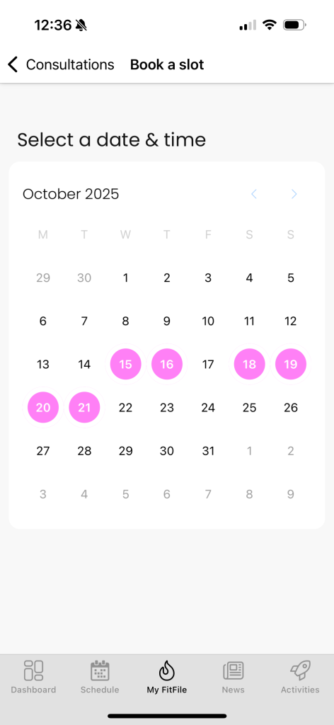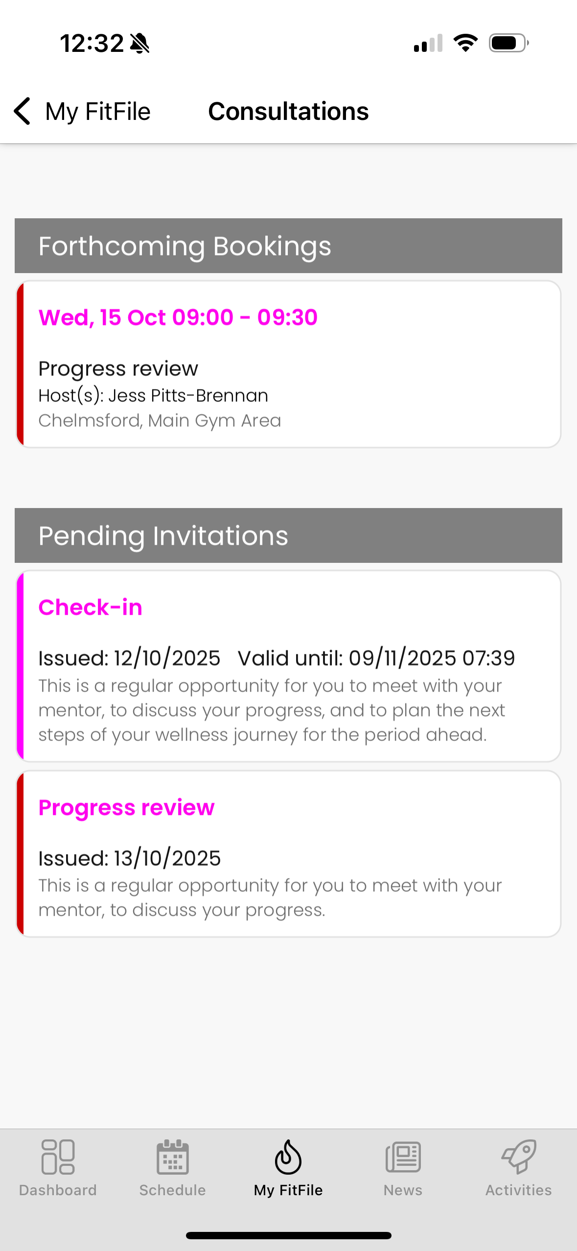 Members can access their DropSlot consultations from two key places within the FitnessHub app: