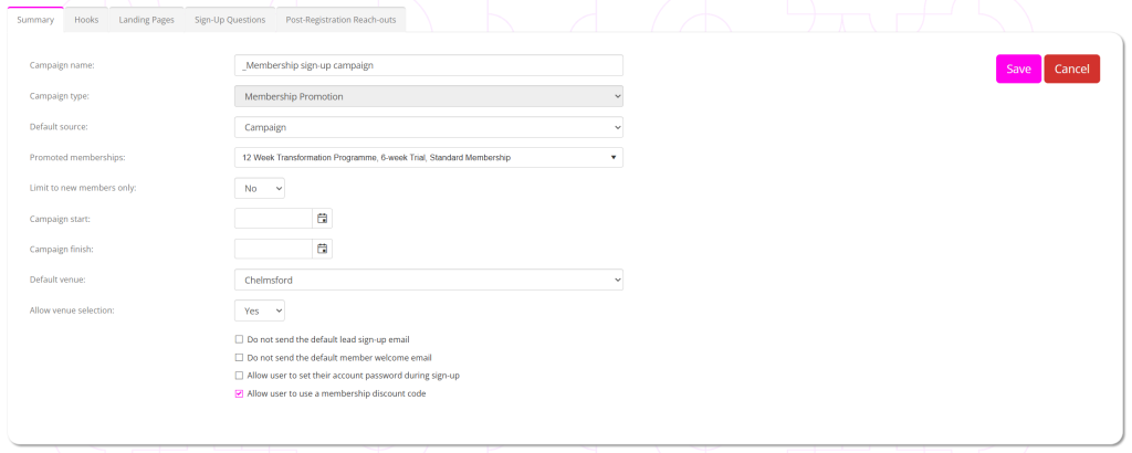 A membership promotion campaign is one of the built-in GymOS campaign types. The purpose of this campaign type is to provide a simple route for an individual to register their interest and to purchase a trial or membership via the GymOS system.