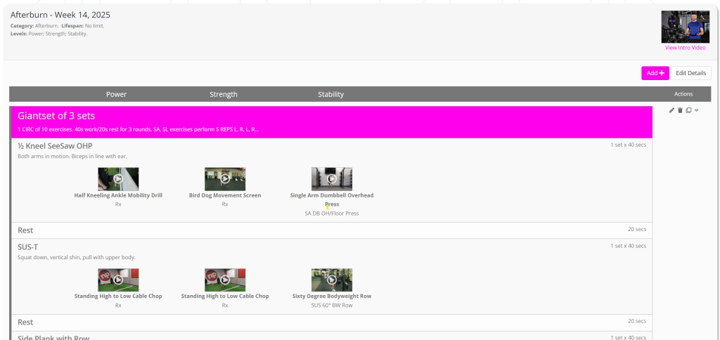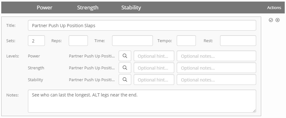 For each variation level, you will specify a variant of the exercise. This is a core feature that enables you to create workouts that suit members of multiple levels. You can configure your variation levels in settings.