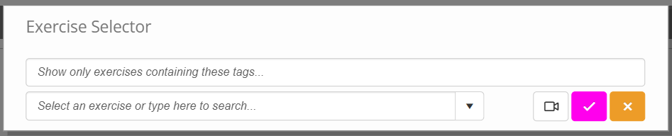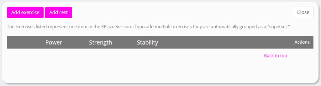 To add an exercise to a session or a set, click the Add exercise or Add exercise to set button. The exercise configurator will be displayed.