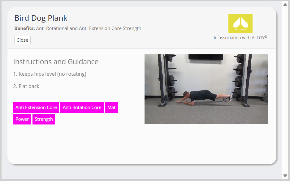 - Tempo – Optional. The tempo at which the exercise should be performed. E.g. “4/2/1”