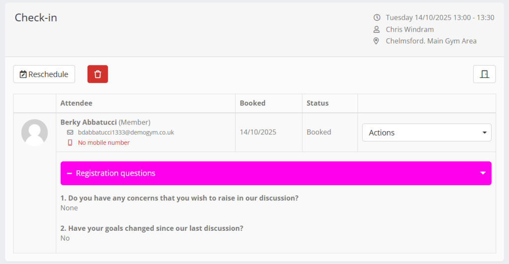 • Assigned mentor – GymOS automatically uses the member’s assigned mentor (ideal for routine check-ins).