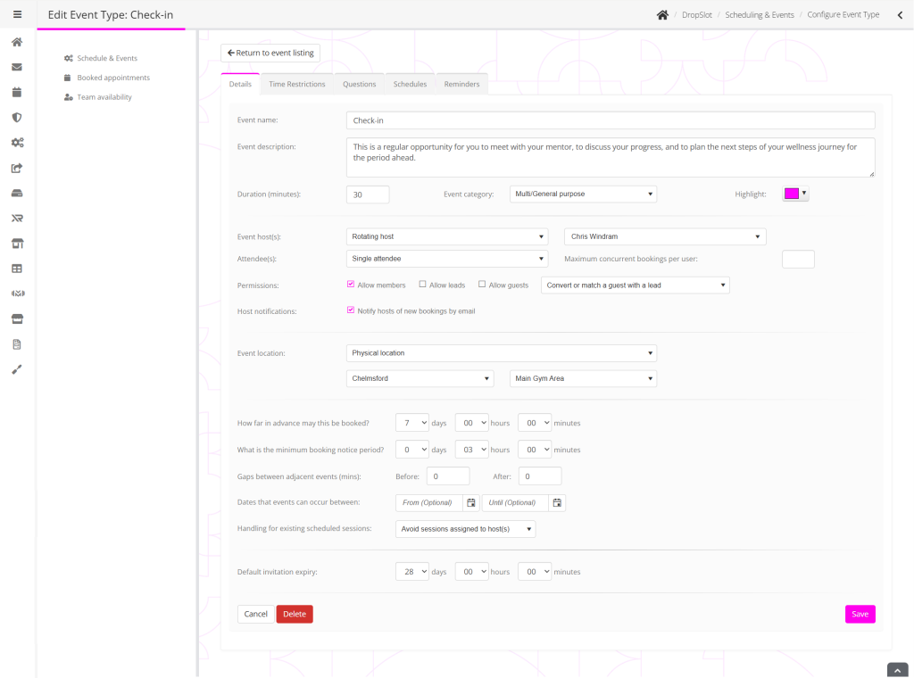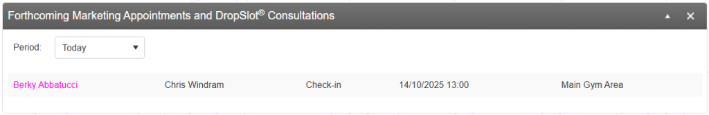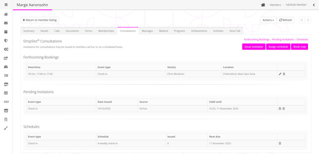 Administration of the DropSlot Consultations feature lives inside your GymOS Administration Portal, alongside your existing GymOS functionality.