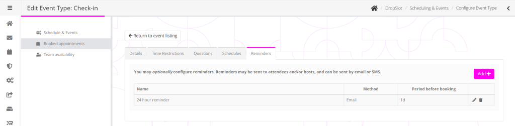 Each event may include an automated reminder sequence – via email, SMS, or immersive email. Hosts and attendees can receive different reminder templates.