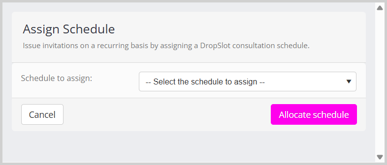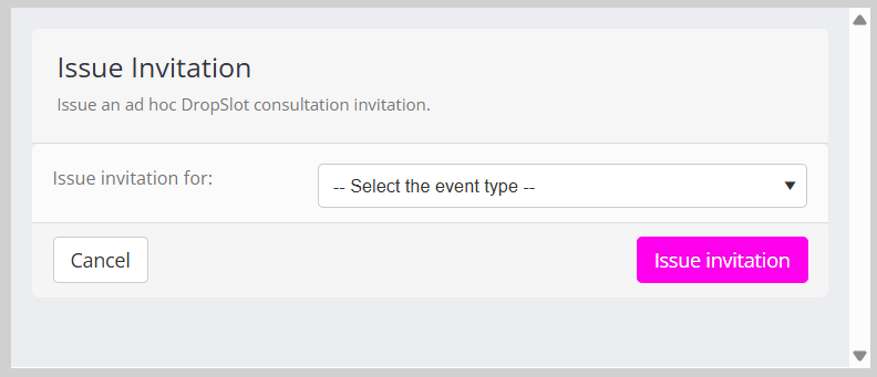 Access this via the main navigation menu at: Connect & Promote DropSlot Consultations Schedule & Events