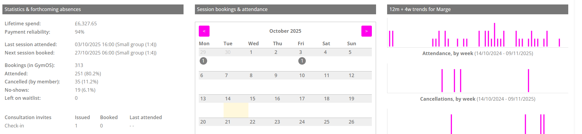 • Create new bookings instantly using the Book Now button (GymOS auto-creates the invitation).