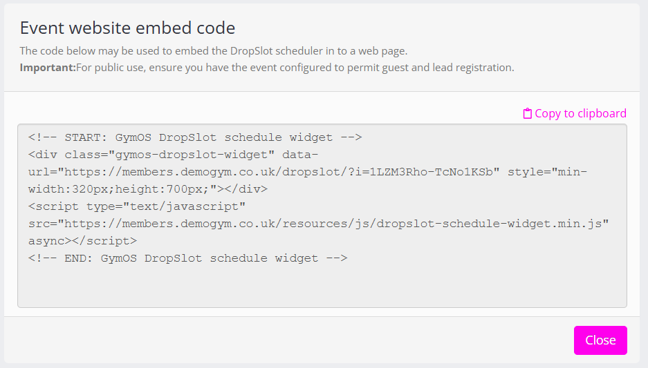 Embed DropSlot directly on your own website using the pre-generated widget code.