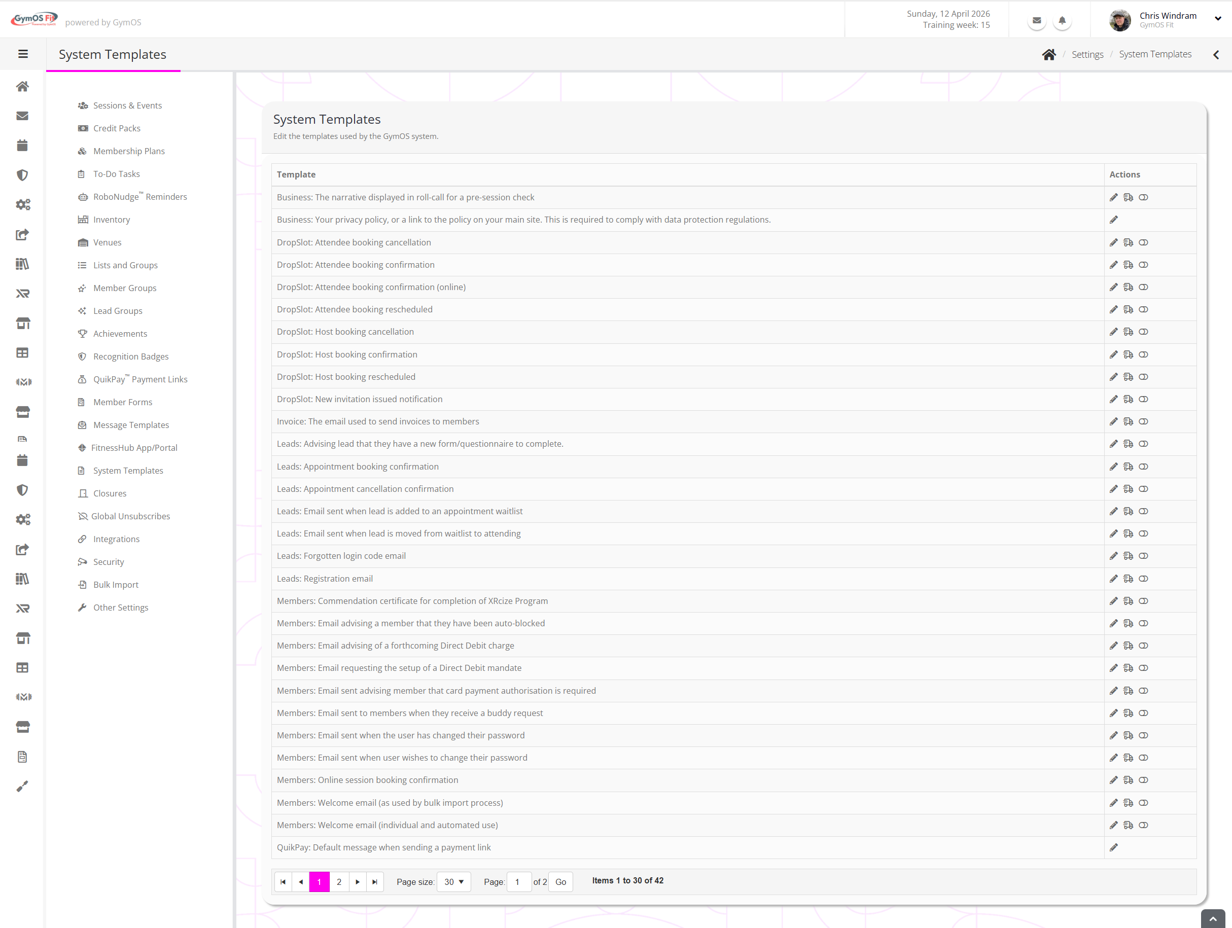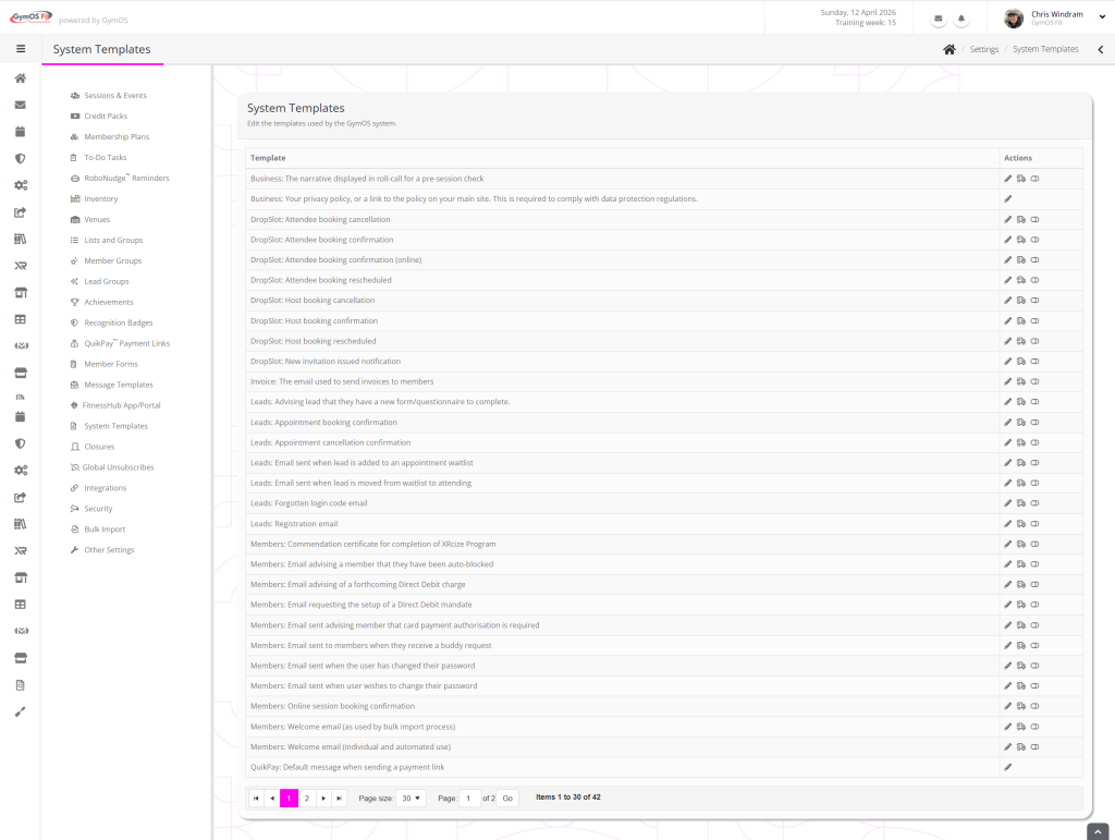 The GymOS system includes dozens of system messages sent to leads, members, and staff upon the occurrence of certain events. These range from session booking confirmations to payment link messages. By default, these are messages displayed within the standard email templates. You may customise the system messages as you wish, including creating them as attractive, immersive emails.