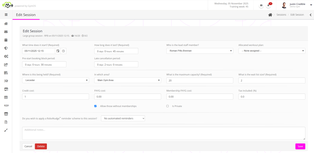 Note: The changes you make do not affect any existing bookings. If you change the time of the session, it will be updated in the member’s app, feeds, and listings. However, we recommend that you message the people booked onto the session to make them explicitly aware of the change to their booked session.