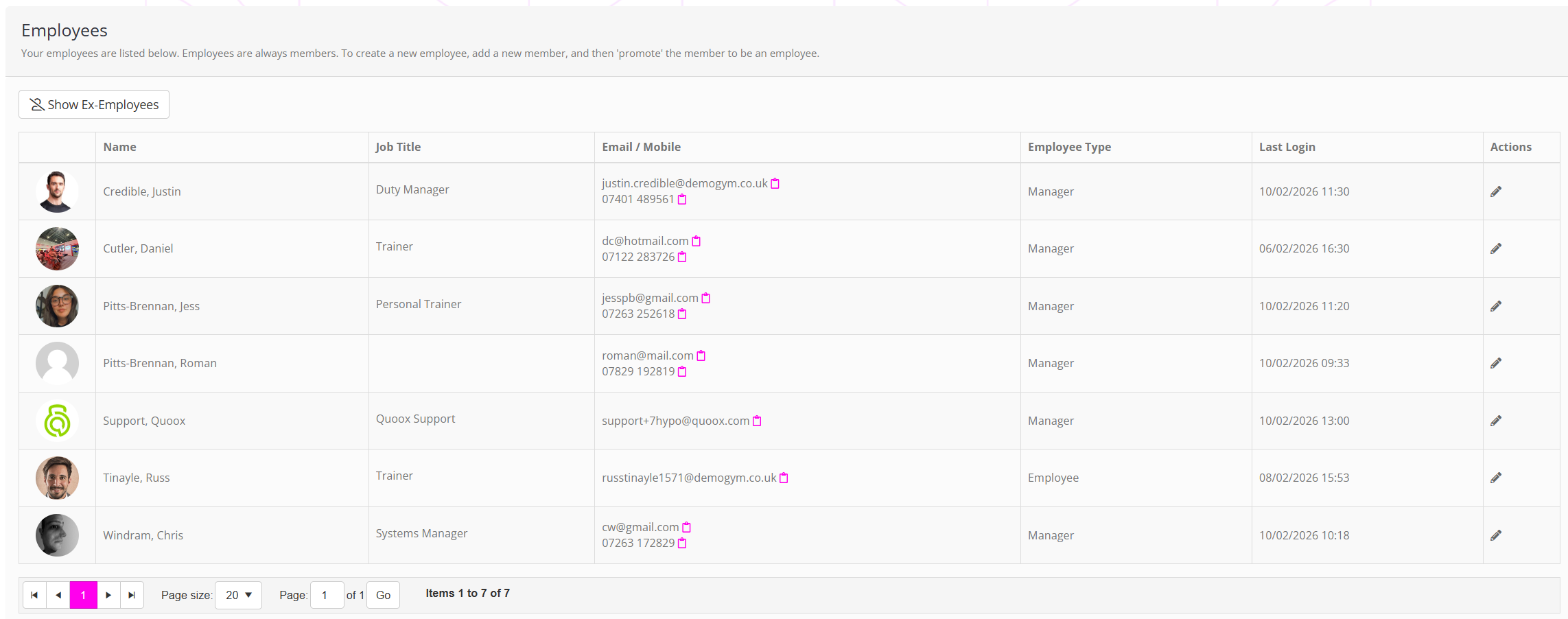 By default, ex-employees are hidden. They may be shown by clicking the Show Ex-Employees button.