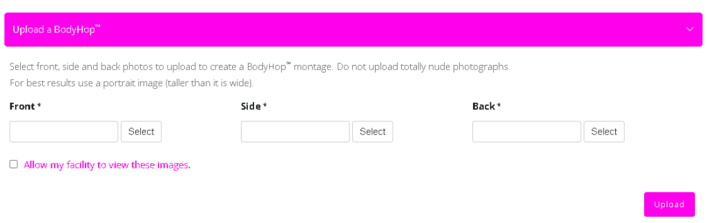 Once uploaded, the images will appear on the BodyHop™ screen along with the date of upload.