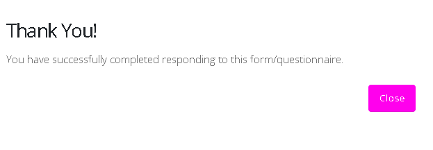 A Close button will be available to exit the questionnaire.