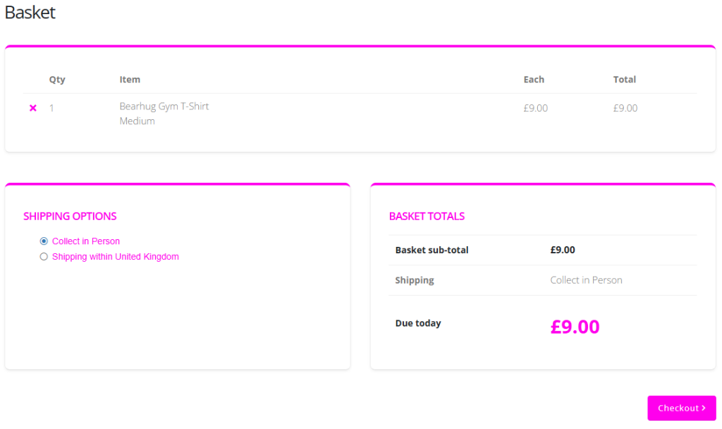 Once the member is happy with the items in their basket, they can click Checkout > .