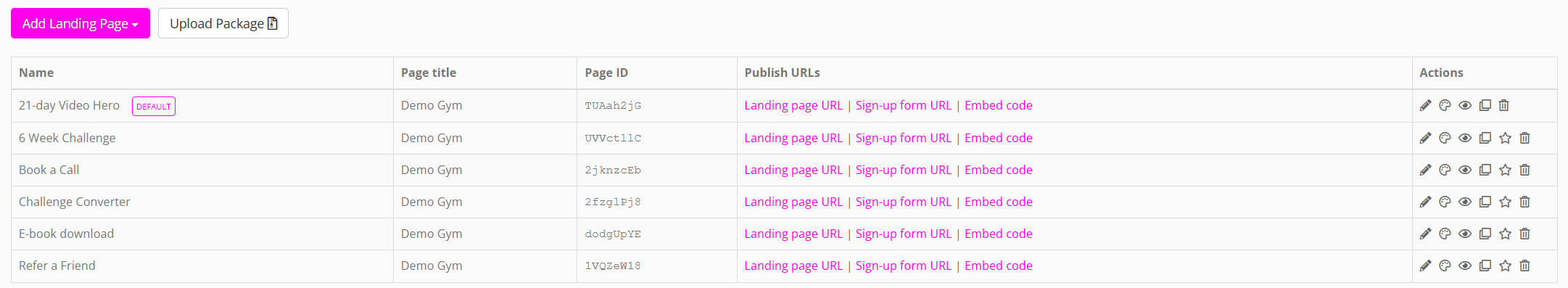 - To create a new landing page, click the Add Landing Page button.