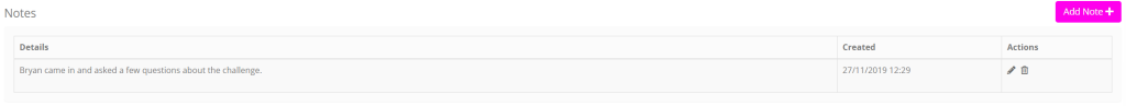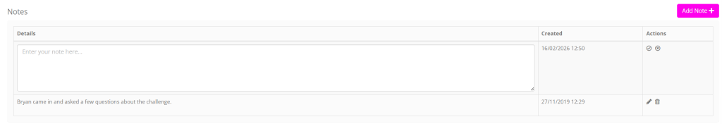 To add a new note, click the Add Note button. A new row will be added to the top of the notes table.