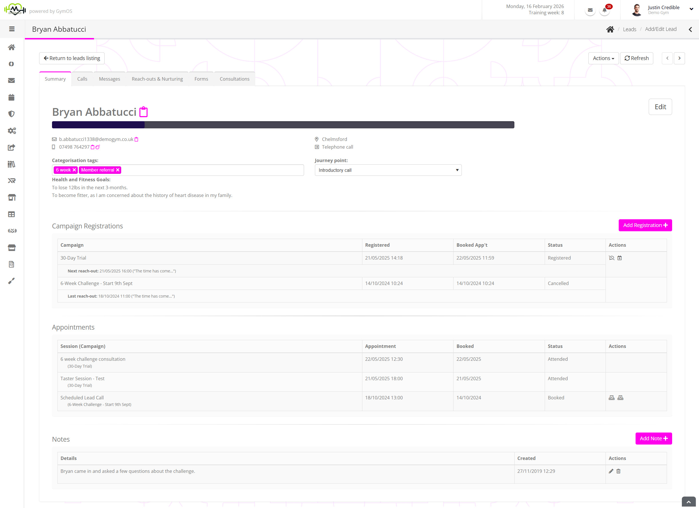 Tags are a great way of grouping leads, which you can then use in a multitude of ways elsewhere in GymOS. Learn more…