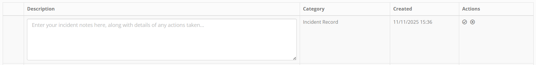 - You may optionally click the icon to make the incident visible to the member, and/or the icon to restrict visibility to managers only.