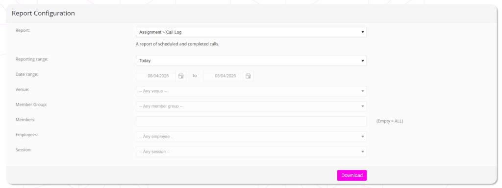 - Select the report that you wish to download from the Report dropdown. When selecting a report, the page will refresh to enable/disable filter options, as appropriate for the given report type.