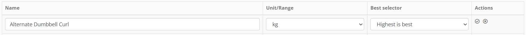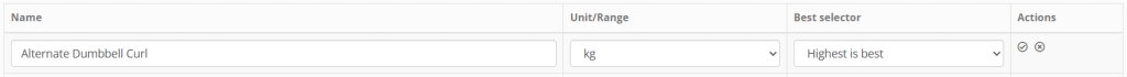 - Unit/Range – the unit for the category. Time; Kg; Lbs; Metres; Inches.