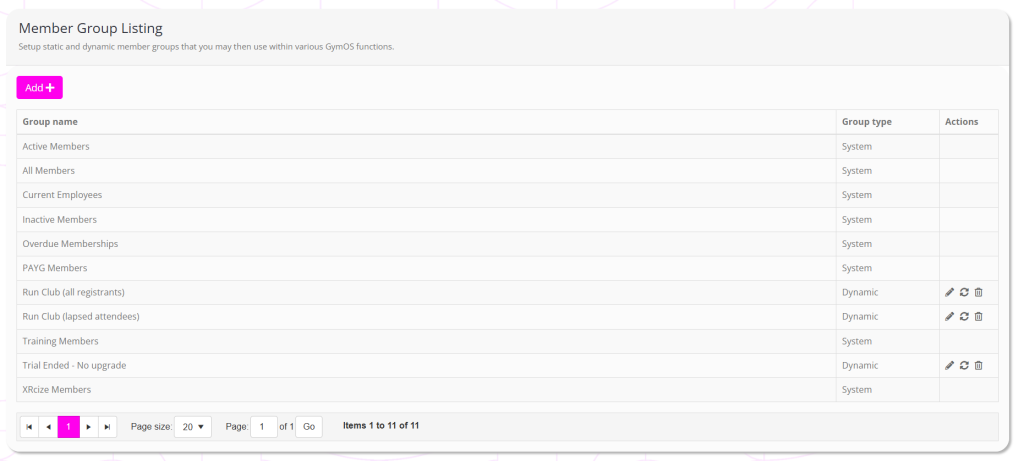 These groups are generated and maintained by GymOS. They may not be edited or deleted, and the members within them are determined by the system. - Static (manually populated)