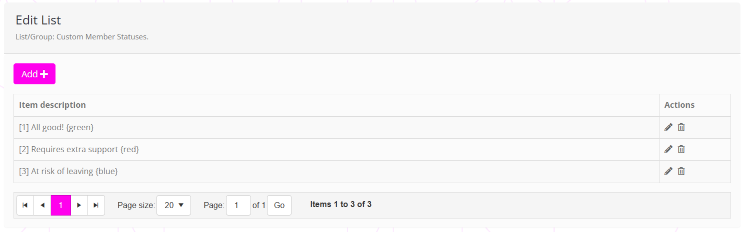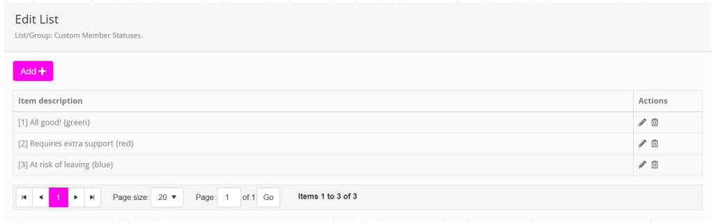 You can modify the definitions of the three colours within GymOS settings (see below). As an alternative, you may specify your own member statuses (of any number), and these become assignable against a member from a drop-down list.