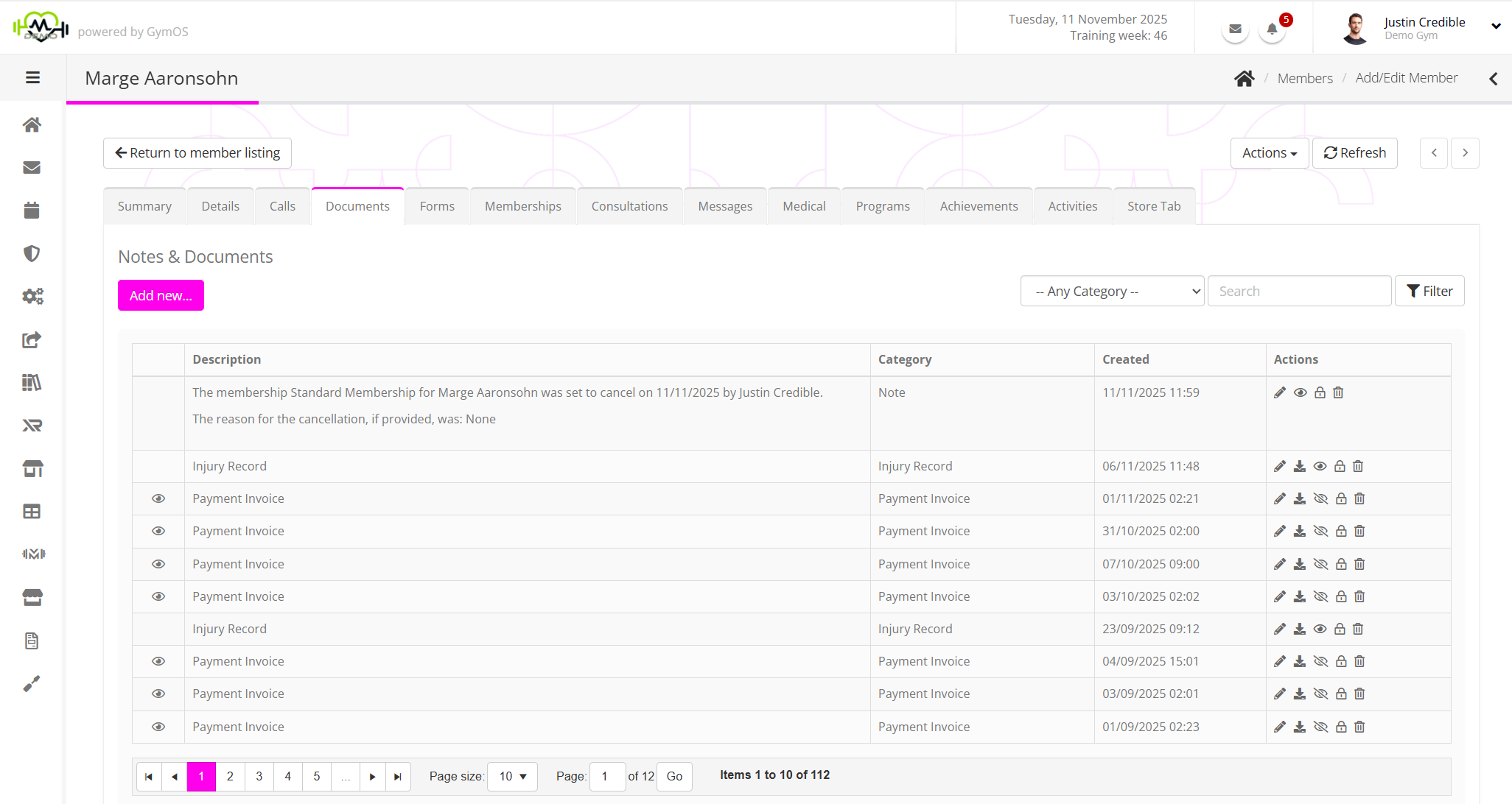 • icon: If present, this indicates that the record is visible to the member via the GymOS FitnessHub app and Member portal.