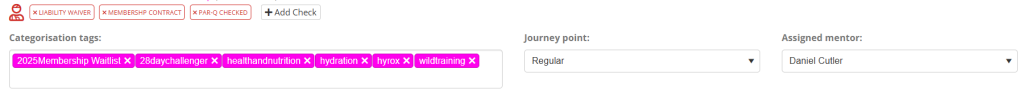 The member’s journey point is a configurable list of options. It is the intended means by which you can identify where a member is in their lifecycle with you, and could range from “Trialist” to “Lapsed member”. Learn more… - Assigned mentor