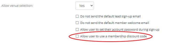 Ticking the Allow user to use a membership discount code enables the discount code functionality for the campaign.
