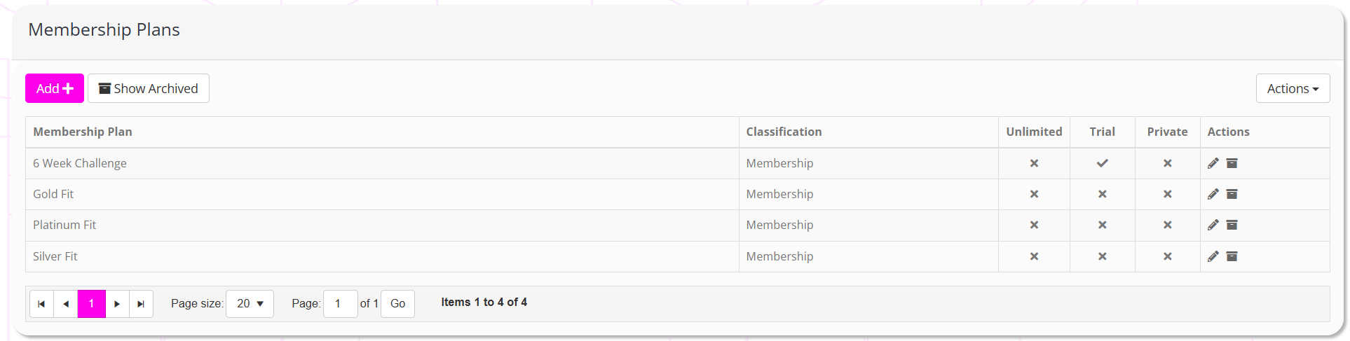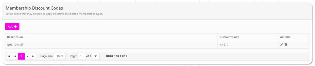 Clicking the button will edit a given discount code, and clicking will delete it. Editing or deleting a discount code does not affect any memberships to which it has already been applied.