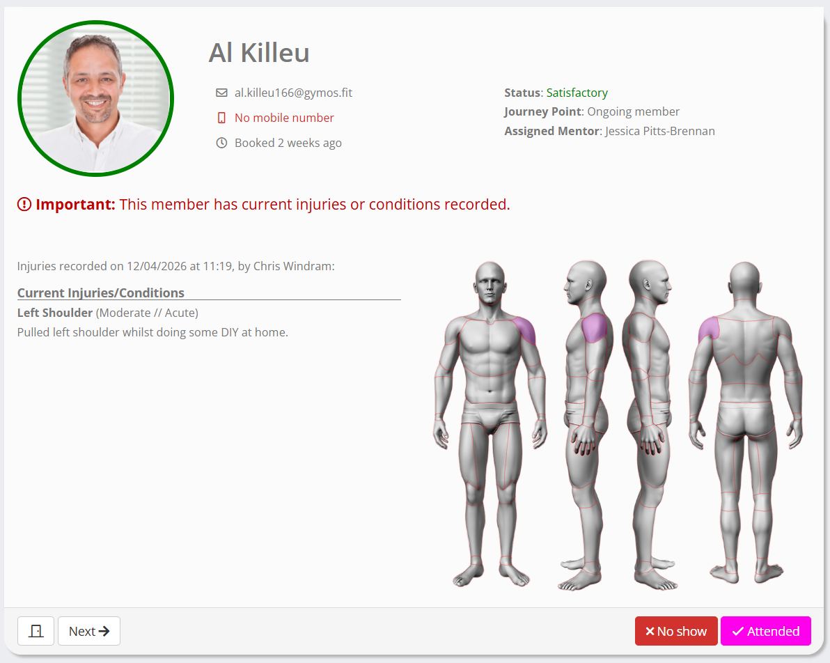 1. GymOS will talk you through the attendees for the session, one by one.