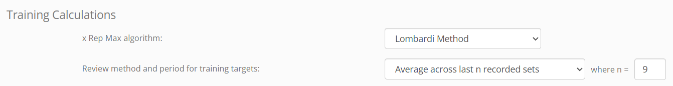 When calculating loading specified using the x%yRM method, GymOS needs to know which of the commonly used algorithms you wish it to use.