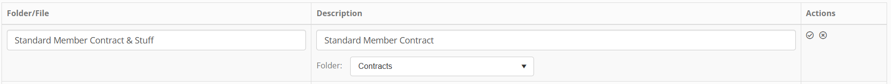 For each row, the folder/file name and an optional description are displayed. Folders are denoted by the icon on the left hand side of the folder name.