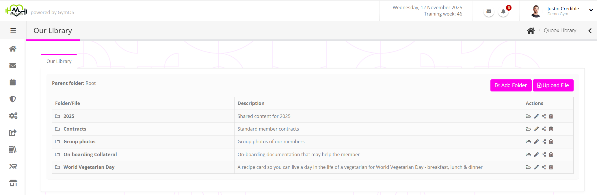 We recommend taking a few minutes to consider a structure for your document library that will be effective for your facility. By uploading files into a sensible folder structure, you can save yourself administration time later by being able to share entire folders with groups or memberships, rather than having to allocate files individually.